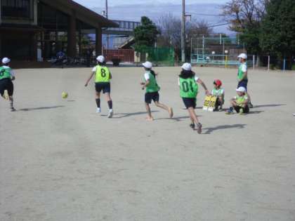 男子にサッカーを習っている子が多く,女子が遠慮してしまうのを心配していました。その対策として,女子のゴールは2点という特別ルールで行いました。