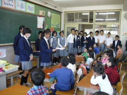 藤森小学校の1年生が藤城小学校の1年生に,本の読み聞かせをして一緒にいっぱい遊んでくれました。おにごっこやリレー,ドッジボールなど,しっかり遊んでもらってどの子もニコニコしていました。