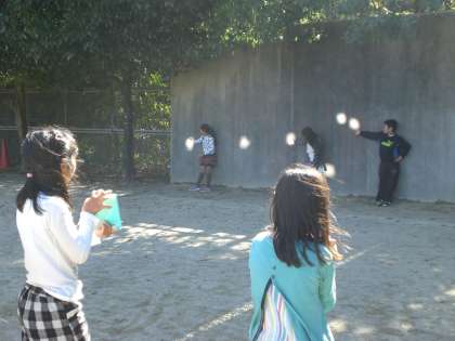 理科の学習で,太陽の光をあてると明るさやあたたかさはどうなるかを調べました。