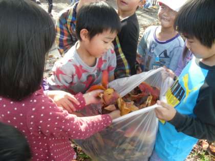 今日は,チャレンジタイムに3グラの落ち葉を拾いに行きました。きれいな色の落ち葉もたくさんあって,捨てるのがもったいないなぁと思いました。一年生は,生活科で秋見つけもあるので,たくさん葉っぱを拾って掃除もしながら,生活科の学習もできました。「葉っぱが赤くなって秋だねえ」というつぶやきが,かわいらしかったです。