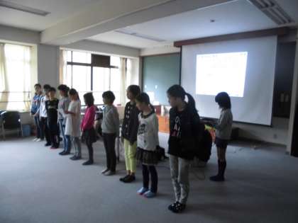これまでグループに分かれてかめのこタイムの練習をしてきましたが,今日は全グループが集まり,それぞれの出来を発表し合いました。他のグループの発表を初めて見て,気付いたことを交流したり,自分たちのグループの課題を見付けたりすることができました。今日の気付きを明日からの練習に生かし,より良い発表にしていきたいと思います。