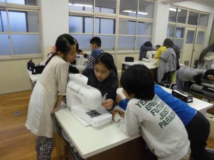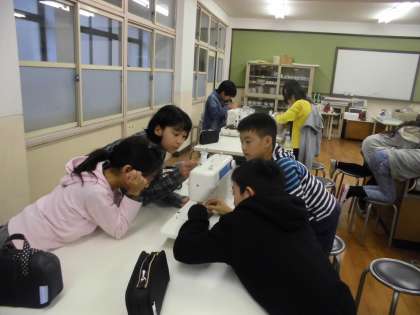 家庭科では「ミシン」の学習に入りました。初めてのミシンに子ども達はドキドキです。今日は,上糸や下糸のつけかたを練習したり,直線縫いを練習したりしました。これから,しばらく練習を繰り返して,ミシンに慣れていきたいと思います。