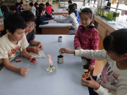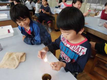理科で「もののあたたまり方」の学習をしています。今日は,マッチのすり方やアルコールランプのつけ方,消し方の勉強をしました。マッチをするという経験が日常生活の中で少なくなってきている影響もあり,恐る恐るマッチをすっている子どもたちが印象的でした。