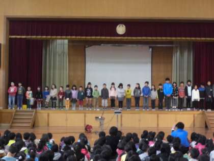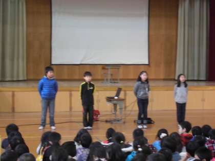 本日,人権集会がありました。各クラスの代表者が,それぞれクラスで決めた人権目標についての振り返りを発表しました。最後には,4年生の代表委員が,おわりの言葉を発表し会を締めくくりました。高学年として全校の前で良い見本になってくれていました。