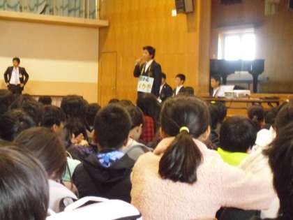 生徒会長や副会長は藤城小学校の先輩方でした。その先輩方の挨拶のあと、藤中についての説明がありました。