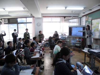 1人1台のタブレットを持ち,授業を展開しました。