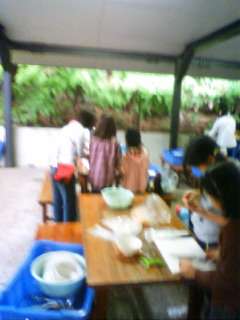 きもだめしコースの下見のあと,寝具の準備をしました。そして,いよいよ野外炊事です。みんなで力を合わせて、カレーの材料を準備して,火をおこしました。おいしいカレーの香りがあふれています!