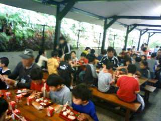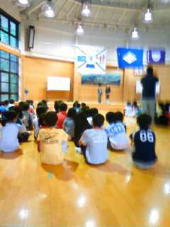朝の集いで、砂川小学校、朱雀第六小学校と三校交流の学校紹介をし、校歌を歌いました。朝ごはんもしっかり食べています。小雨が降ったり止んだりですが、活動はできそうです。