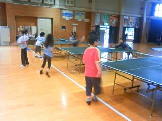 午前中の芝生広場でのスポーツ活動を、プレイボールでの室内スポーツに切り替えました。卓球、フリスビー、輪投げ等を楽しみました。磯観察のビデオも鑑賞して、午後の宮崎浜の活動に備えます。