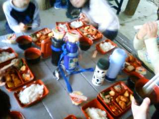 クライマックスのキャンプファイァを前に、少し早めの夕ごはんを芝生広場の東屋でいただきました。お天気も少し持ちなおし雨は止んでいます。