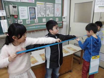 2年生では,算数の学習で100cmをこえる長さの学習をしています。