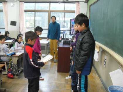 国語の学習で,3年生に1年先輩として今年から始まったクラブ活動を紹介してあげる「クラブ活動リーフレット」を作成しました。そのリーフレットを,来週のクラブ見学に向けて,代表委員の子たちが3年生に渡しに行きました。3年生も喜んでくれているようで,上級生として1つ良い取組ができたように思います。