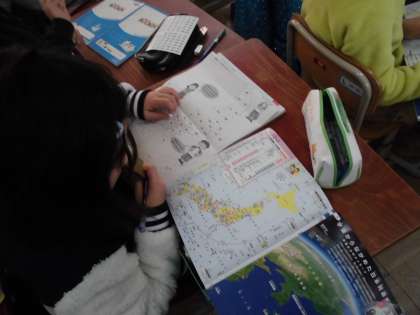 社会の学習で,「わたしたちの京都府」の学習しています。京都府をくわしく調べていくのはもちろん,京都府以外の都道府県についても名前や位置を覚えていっています。ご家庭でも機会がありましたら,色々な都道府県のことを話題にあげていただければありがたいです。
