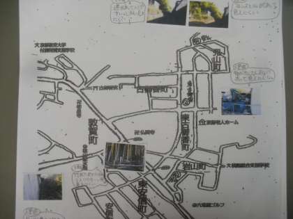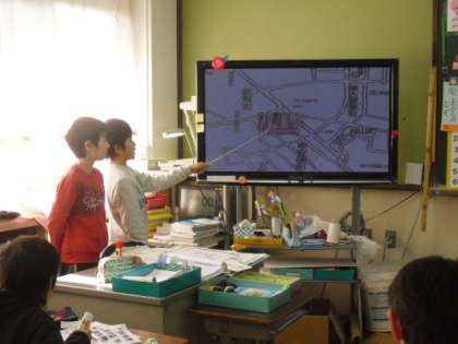 冬休み前に「防犯」の視点で行った校区探検の結果をもとに、今日からマップ作りに入りました。それぞれのグループで選んだ一番危険だと思う場所とその理由を発表し、マップにその場所の写真をはっていきます。発表を聞いていると、どのグループも地域のかたに教えていただいた「入りやすくて見えにくい」のキーワードを意識して場所を選んでいることが伝わってきました。