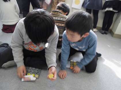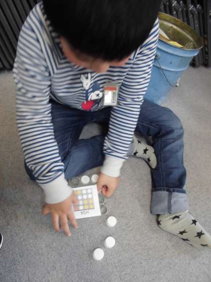 一人一枚型をもらって,そこに書いてある指示通りにキャップをはめていきます。