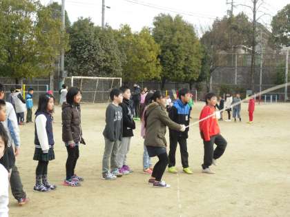 6年生が中心となって中間休みに大縄の練習をしています。今年度から始まった「縦割り活動」の最終の活動になります。縦割り活動を数多くしていく度に,グループのメンバーの顔と名前が一致し,コミュニケーションがとりやすくなったようです。