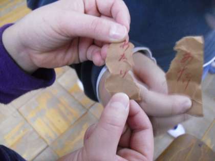 今日は、月に1回のお楽しみ係によるお楽しみ会でした。今回は、係のたっての希望で節分は過ぎてしまったけれど、豆まきをしたいということでプログラムに登場。短い期間で着々と準備をしてくれたおかげで、みんないっしょに豆まきを楽しむことができました。しかも豆まきの後には、まだしかけがあって、落ちている豆を開けると「あたり」が書いてあるという宝探しもついてきて、1石2鳥の楽しい豆まきでした。