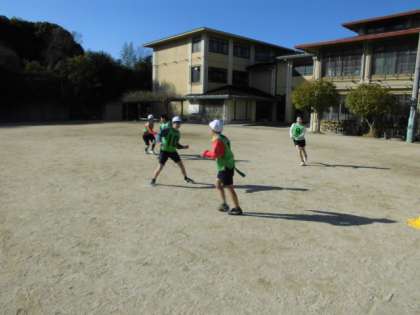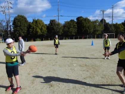 今までやてってきた球技とはかなりルールが異なるので,最初は戸惑っていた子どもたち。慣れてくると,「楽しい!」と盛り上がっていました。