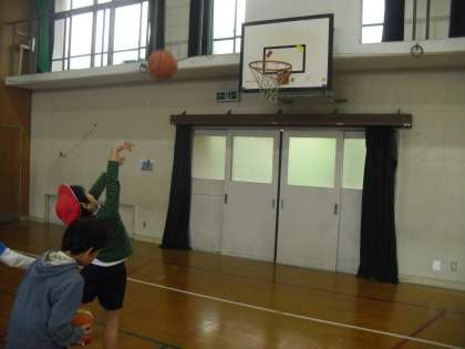 最後はバスケットゴールに向けてシュートを打つ活動を行いました。初めての児童も多かったようでゴールに向けて懸命にシュートを放っていました。
