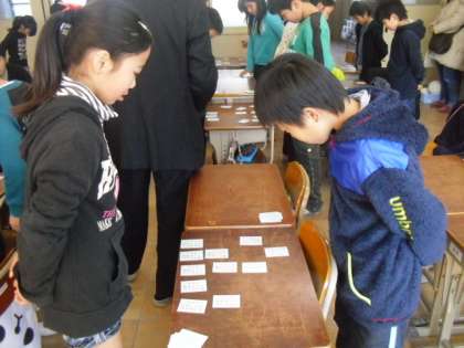 5時間目は,学年全体での「百人一首大会」です!冬休み明けから毎日取り組んできた百人一首。今日は学級を超えて対戦をしました。みんなとても真剣な表情で,白熱した戦いでした。今後も続けていきたいと思います。