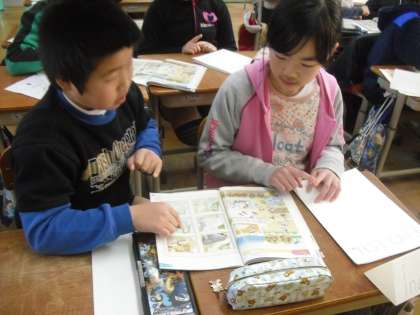 発音された言葉をしっかりと聞き取り,友達と競い合いながら,英語の学習を楽しんでいました。