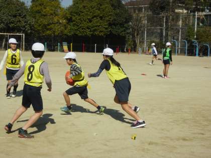 いつものボール運動ではなかなか活躍できない子どもも,しっかり「トライ」したり,走ってパスをもらったり出したりする姿が沢山見られました。