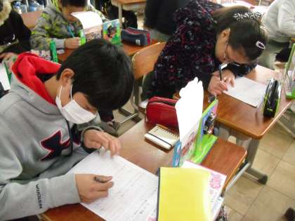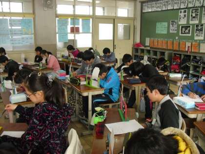 6年生最終の作品「フォトスタンド」の鑑賞をしました。鑑賞も最終ということで,皆気合を入れて「友達の作品のステキなところ・工夫しているところ」をよく見て書きました。どの作品も6年間の思い出を物語るべく力作でした。