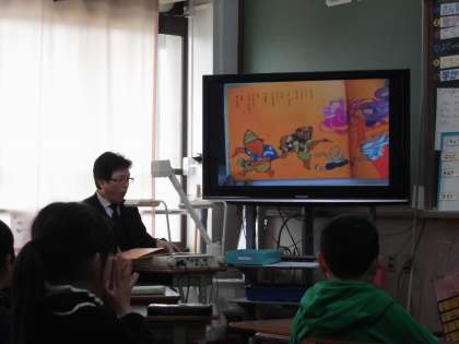 今日は,なんと教頭先生が本の読み聞かせに来てくれました。