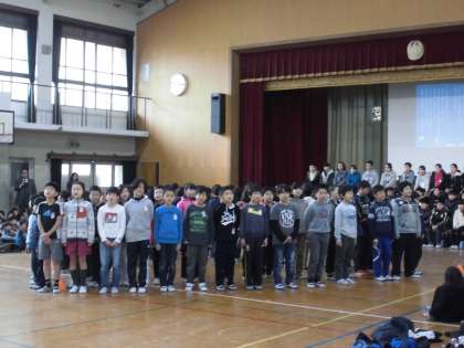 今日,6年生を送る会がありました。もう少しで卒業していく6年生に,感謝の気持ちを込めて各学年がそれぞれの発表を行いました。4年生も練習の成果を発揮して素敵な歌のプレゼントができました。最後は全校合唱曲「コスモス」を歌って会を締めくくりました。