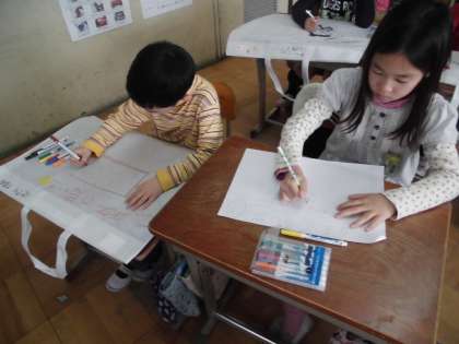 1年間の行事を思い出しながら,真剣に描いていく姿が見られました。