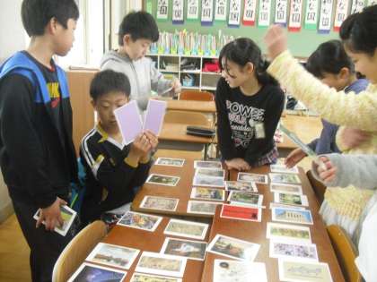 図工の学習で「アートカード」を鑑賞し,自分のお気に入りの一枚を決めました。