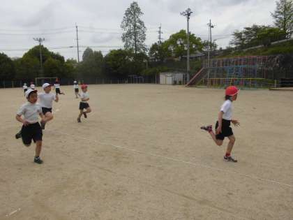 2回タイムを測ったのですが,「2回目の方が良くなったよ!」「次は足を上げて走ってみよう。」とのつぶやきが聞こえました。