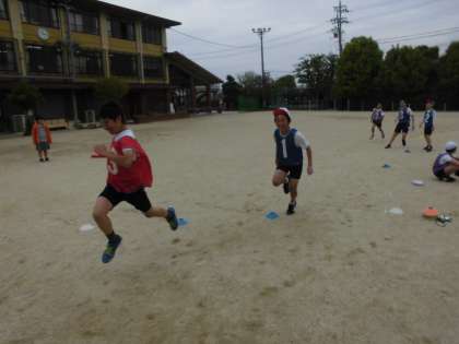 今日の体育はリレー。6年生の熱いレースが繰り広げられました。