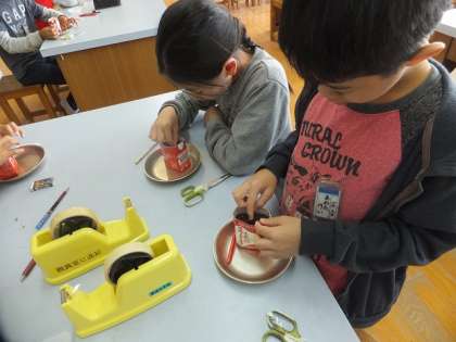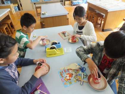 牛乳パックを利用してツルレイシのたねを蒔きました。発芽しやすいようにたねの先を少し切りとりました。しばらく中庭で観察を続けます。芽を出した時を楽しみにわくわくしている子ども達でした。