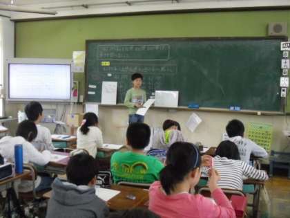 算数の時間に,自分のノートをTVに写して分かりやすく説明したり,ホワイトボードに内容を書いて説明したりしました。今日の授業では,友達の考え方を聞くことにより,自分との違いに気付いたり,やり方が理解できたりと,収穫の多い時間でした。