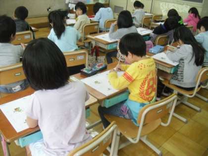 「姿勢に気をつけて,ていねいに書こう」をめあてにいろいろな線を書く練習をしました。うずまきなど難しいのもありましたが,みんな集中して書いていました。