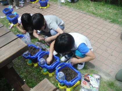 あさがおのたねまきをしました。