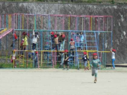 今日はとても良い天気でした。なかなか昼休み外遊びができませんでしたが,運動場で遊ぶことができました。総合遊具で遊んだり,鉄棒をしたり,おにごっこをしたり,楽しく遊ぶことができました。汗をいっぱいかいて教室に戻ってきました。