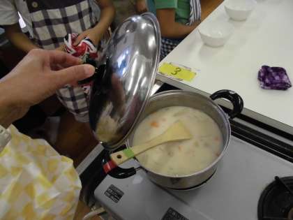 山の家に向けて調理実習を行いました。山の家ではカレーライスを作りますが,今回はシチューを作りました。作り方を把握し,グループで協力してがんばって作りました。味もおいしかったようで,みんな喜んでいました!山の家でも,みんなで協力して「華麗なるカレー」を作れたらいいな,と思います。