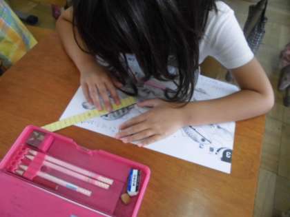 そこで,今日は便利なものがあるよと,ものさしを使って長さを測りました。