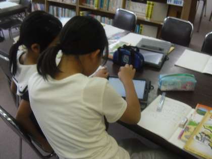調べたことはタブレットでまとめて、みんなに発表。