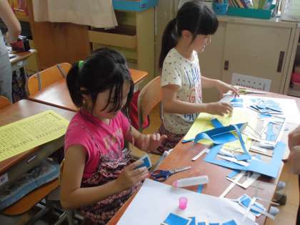 卓球クラブでは,初めて卓球に取り組んだ子どもたちも多かったみたいで,基礎から卓球を学んでいました。百人一首クラブは,百人一首カードを作っていました。
