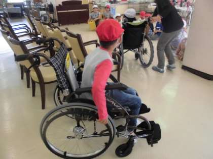 次に,4つのグループに分かれて,施設の中を探検させてもらったり,車いすの体験をさせてもらったりしました。