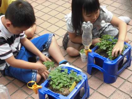 生活科で育てているミニトマトの芽がたくさん出たので,まびきをしました。