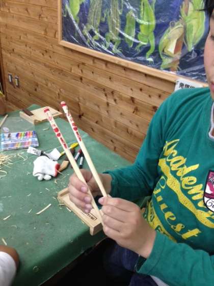 こんなふうに美味しくごはんをいただいているわけですが、子どもたちが使っているお箸は、午後に自作した竹箸です。