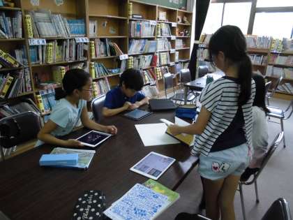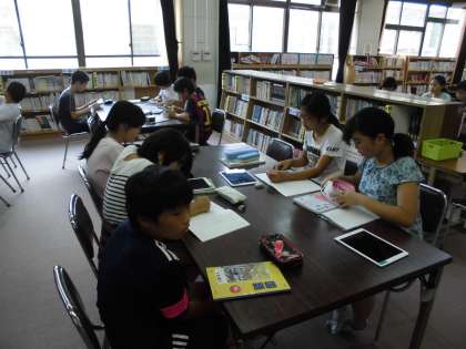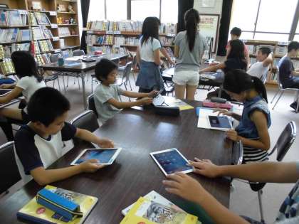 それぞれの主張をまとめるために,タブレット端末や本を使って,調べ学習を行いました。