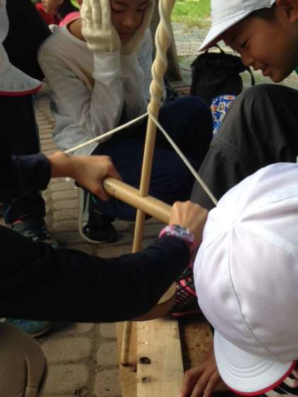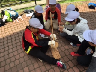 道具を使っての火起こしに取り組みます。