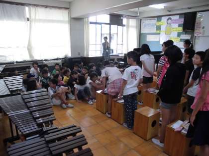 先日の1年生に引き続き,今日は5年生が6年生の歌の練習を見学に来てくれました。