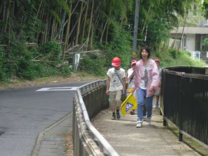 地域別のグループに分かれて校区探検をしました。紹介したい場所に行って写真を撮ったり,様子を詳しく見学したりしました。生き返りの安全については,たくさんの保護者の方にご協力いただきました。ありがとうございました。