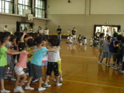 3時間目は,音楽で学年で体育館でしました。歌に合わせて,遊んだり,踊ったり。